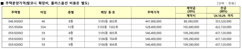 - 전용면적별 공급세대 : 전용 46㎡ 1세대, 전용 55㎡ 1세대, 전용 59㎡ 3세대