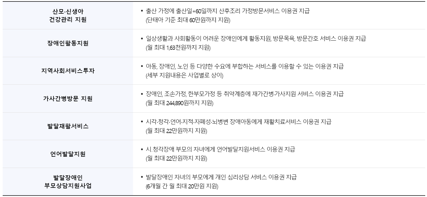 | 바우처 서비스 | 지원혜택 | 비 고 |